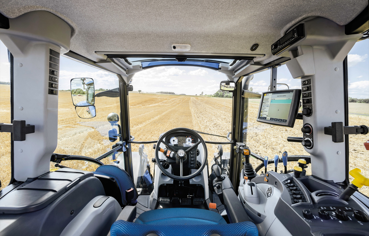 Pela primeira vez na gama T5 Electro Command, pode desfrutar da conhecida suspensão dianteira Terraglide™ da New Holland, que garante uma condução suave mesmo nos terrenos mais acidentados. Se a combinar com o sistema de suspensão da cabina Comfort Ride™, descobrirá o segredo da agricultura com um toque de luxo.