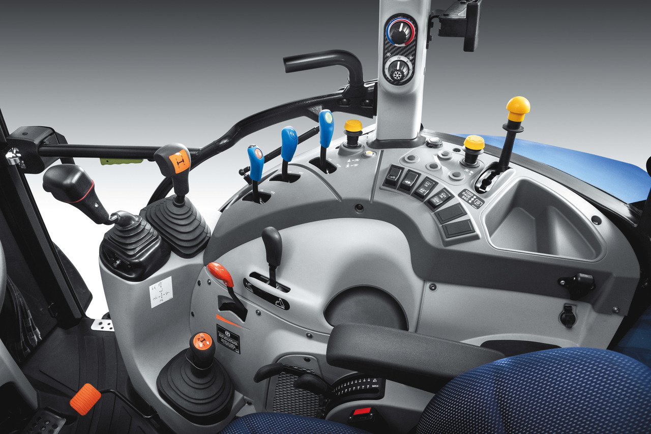 A gama T5 oferece-lhe conforto personalizado. A cabina VisionView™ Deluxe foi concebida a pensar em si, para lhe oferecer a melhor experiência de operador. Uma cabina espaçosa permite-lhe apreciar os dias longos que passa ao volante. A visibilidade panorâmica está garantida. Sempre. Janelas laterais com vidros curvos que se podem abrir. O para-brisas traseiro alargado garante uma visibilidade perfeita do engate traseiro. Pretende mais? Também se sentirá confortável. Regule com precisão a coluna de direção e o painel ajustáveis. Pode inclusivamente escolher uma versão ROPS com tejadilho compatível com FOPS. A sua gama T5. Única, tal como o seu operador.